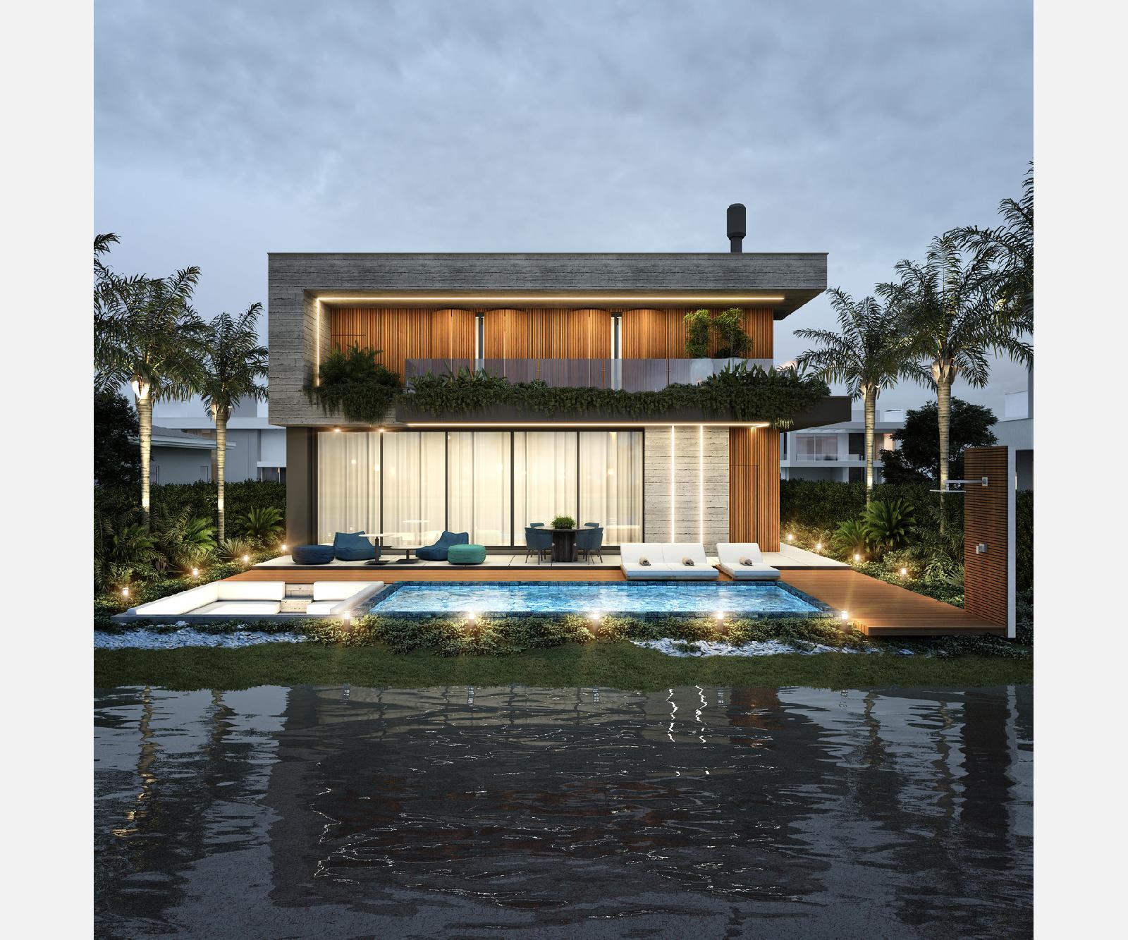 Garagem para 2carros Churrasqueira Cozinha, Jantar e Estar integrados Lareira a gás Lavanderia 1 Lavabo 1 Lavabo Externo Varanda 1 Suíte Piscina Fire Place Deck SEGUNDO PAVIMENTO: Estar Intimo 1 Suíte Master com closet, sacada, floreira e banheira 2 Suítes com closet, sacada e floreira |